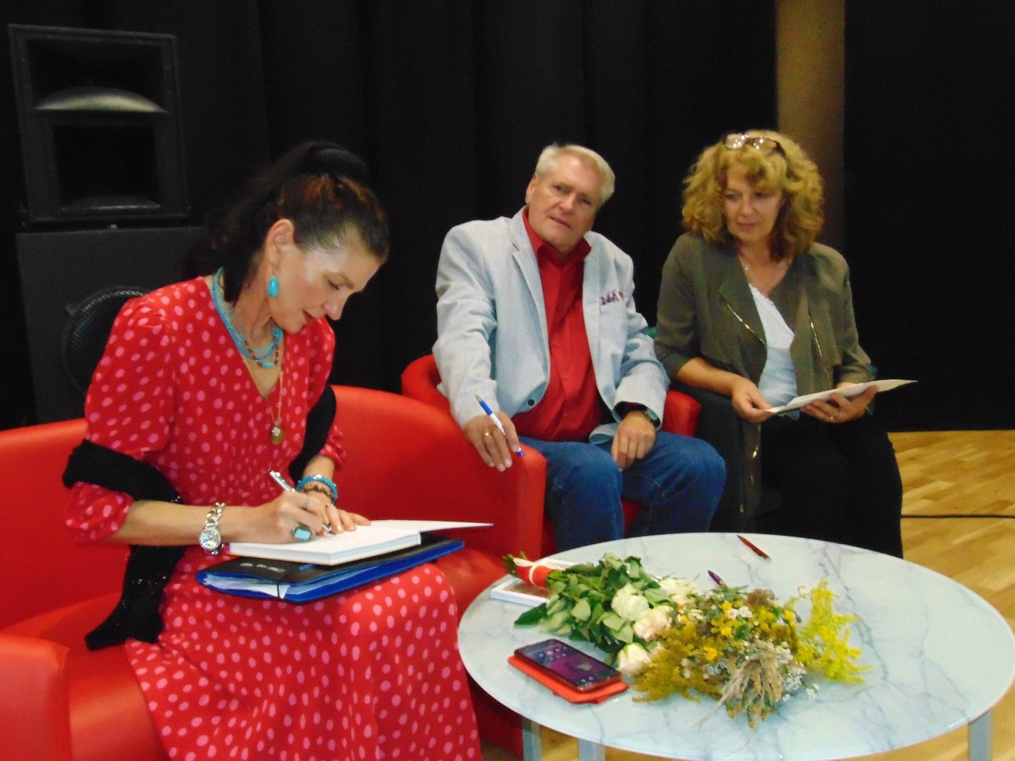 Spotkanie aktorzy rozpoczęli od odczytania fragmentów powieści, uświetniając tym samym akcję Narodowego Czytania, w której rokrocznie uczestniczą nasze biblioteki. Fragmenty tekstu wypowiedziane przez artystów zachwyciły publiczność, która z niecierpliwością czekała na dalszą część spotkania prowadzonego przez Janusza Klimaszewskiego. Aktorzy z sentymentem wspominali swoją pracę na planie filmowym, a także podzielili się zabawnymi anegdotami na temat drobnych niepowodzeń podczas kręcenia filmu „Nad Niemnem”. Aktorzy opowiedzieli także o tym, jak potoczyło się ich życie po zakończeniu pracy na planie filmowym.