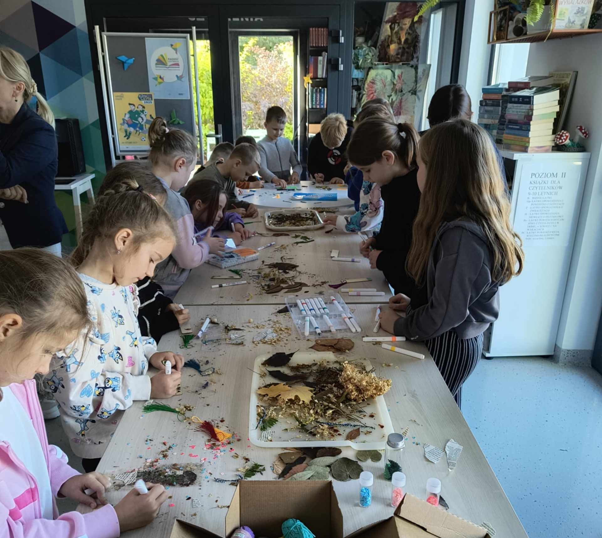 W dniach 25-27 września 2025 roku uczestniczyliśmy w Festiwalu „Radość Czytania”. Wydarzenia przedsięwzięcia objęły nie tylko Gminną Bibliotekę Publiczną w Kowalach Oleckich, ale również Filie w Sokółkach i Stożnem. Radosne święto książki i czytania zgromadziło w naszych placówkach dzieci, młodzież, rodziców i dziadków. W bibliotece w Kowalach Oleckich od rana było gwarno i wesoło, ponieważ dwie grupy przedszkolaków wzięło udział w warsztatach z bajkoterapii. Oprócz przedniej zabawy, słuchały bajek i poznawały swoje emocje. W tym samym czasie w Filii w Sokółkach odbyło się spotkanie z członkiniami Koła Gospodyń Wiejskich „Sokółczanki” pt. „Czytamy, słuchamy i tworzymy”. Uczestnicy mieli okazję posłuchać pięknych, lokalnych opowieści, a następnie – przy wsparciu pań z KGW – własnoręcznie wykonać zakładki do książek z wcześniej przygotowanych, suszonych ziół i kwiatów. Ta twórcza i pachnąca przygoda wzbudziła wiele radości i dała dzieciom okazję do rozwijania wyobraźni oraz zdolności manualnych.