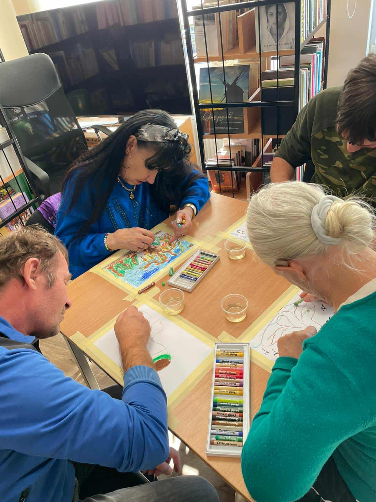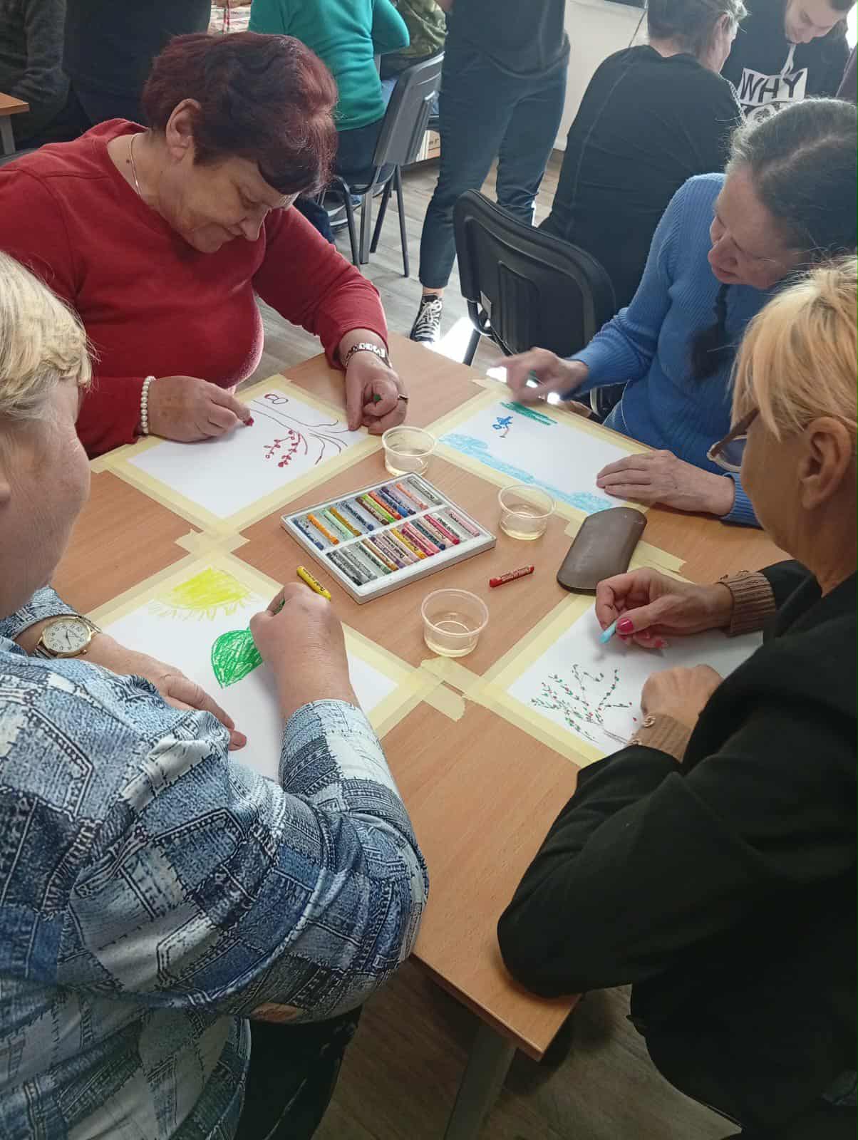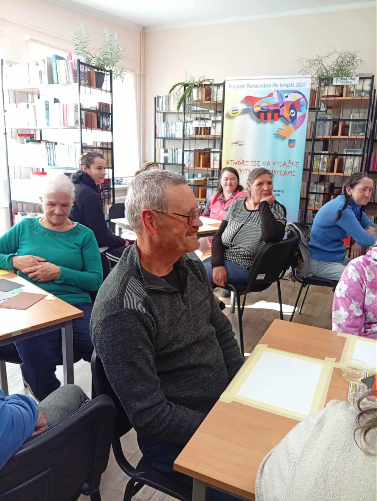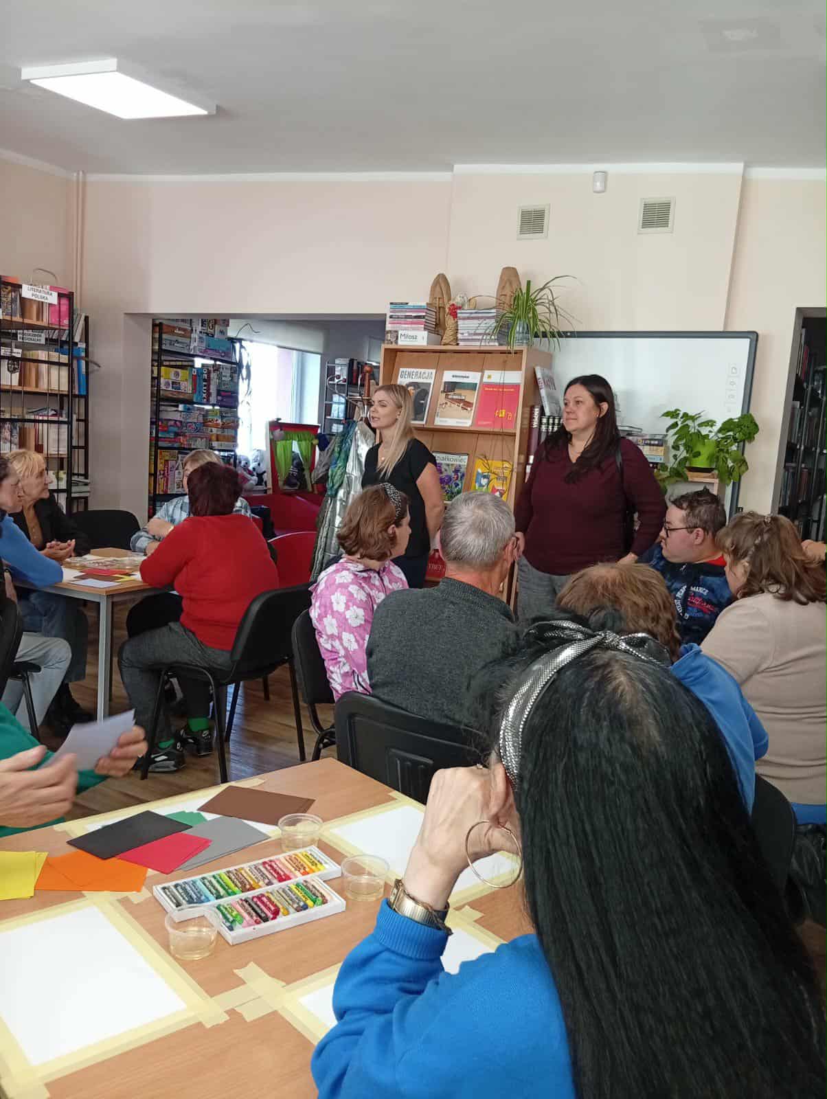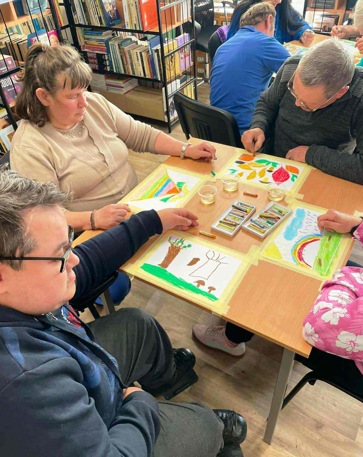 3 października w Gminnej Bibliotece Publicznej w Kowalach Oleckich, a skierowane były do uczestników tutejszego Środowiskowego Domu Samopomocy . Po wysłuchaniu dwóch różnych utworów poetyckich, które przepełnione były kolorami, muzyką, nastrojem, bogactwem flory i fauny, rozpoczęła się rozmowa o emocjach jakie wywołały te wiersze. Odbiór był bardzo pozytywny, a emocje podobne, każdy opowiadał co widział, słyszał i czuł podczas słuchania. Gdy słowa ucichły przyszedł czas na przeniesienie tych wrażeń na papier. W ruch poszły kredki i palce, które rozprowadzały po kolorach olej. Powstały piękne prace, które zachwycały oglądających i budziły zdziwienie wśród samych wykonawców, a mianowicie, że tak udało im się wydobyć z wysłuchanych wierszy, piękno jesieni. Z uśmiechem na ustach i radością, a nie jesiennym smutkiem, każdy ze swoim dziełem, opuszczali bibliotekę.