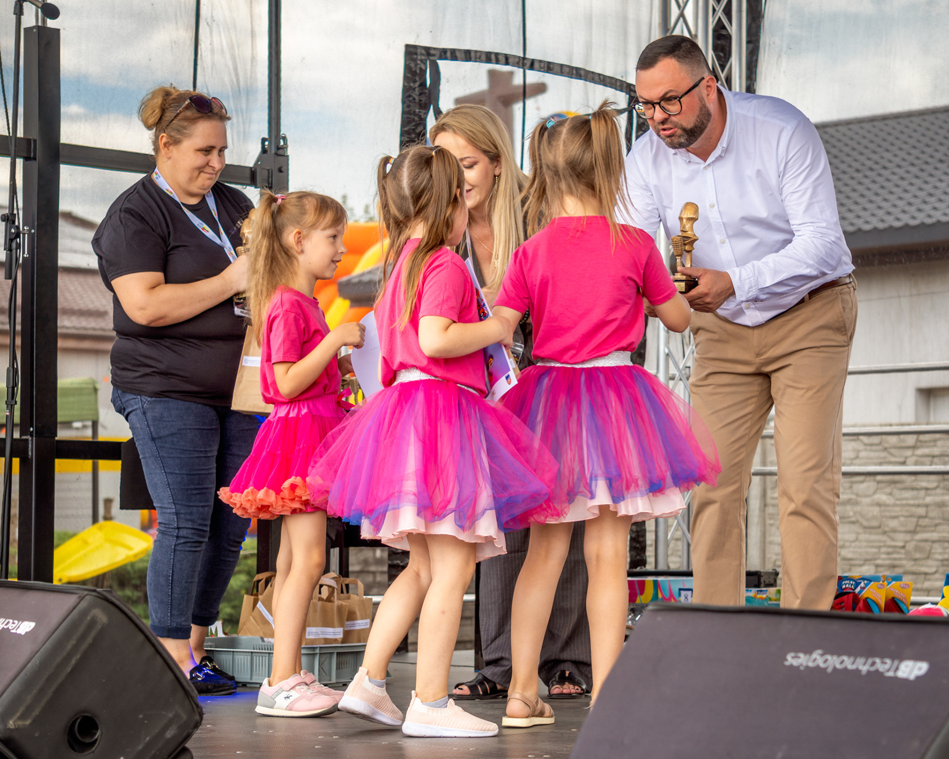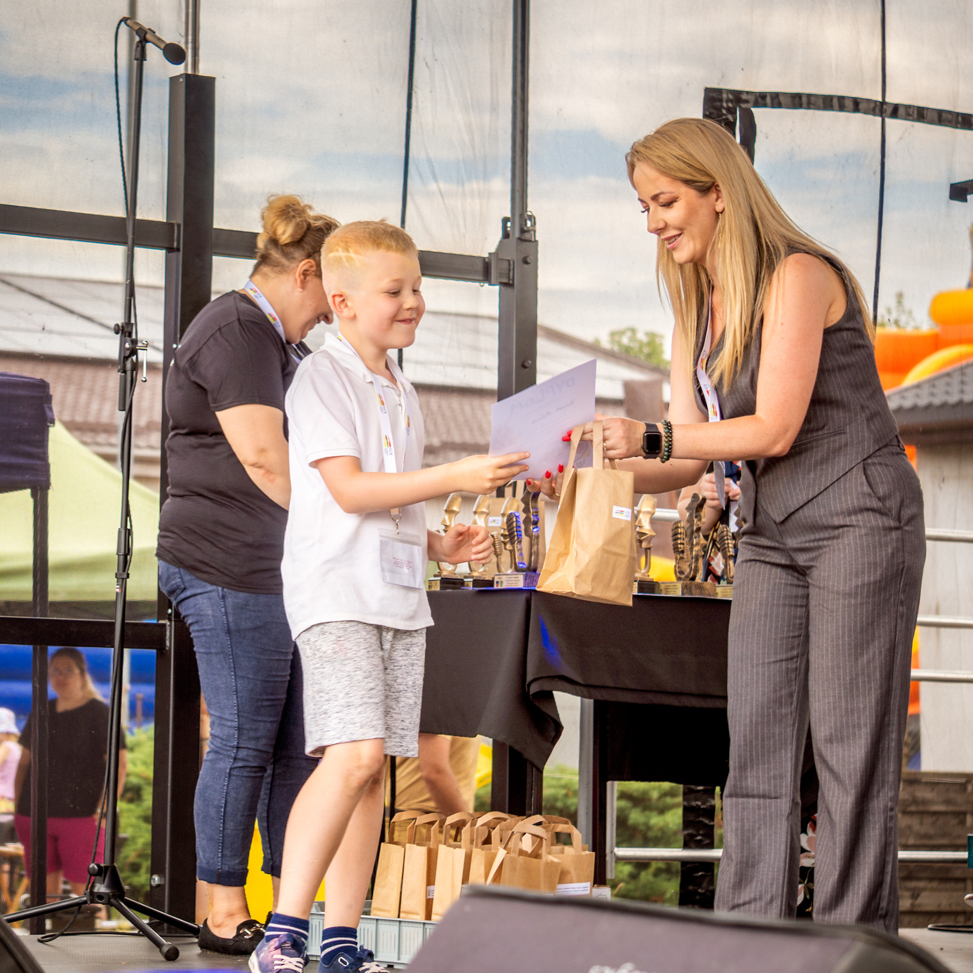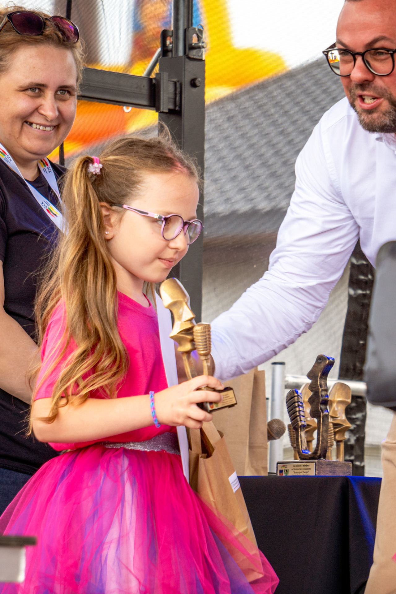 Kolejnym punktem Festiwalu były gry i zabawy rodzinne, które zgromadziły dużą ilość osób biorących udział w różnorodnych zabawach i konkurencjach, na które zapraszał wysoki, dmuchany „patyczak , poruszający się w rytm muzyki. Radości było co niemiara, a jej zwieńczeniem okazało się kolorowe szaleństwo, po którym niektórzy musieli zmienić swoje okrycia. Chwilę odpoczynku zapewniły występy m. in. najlepszych uczestników przeglądu „Scena jest Twoja” czy grup tanecznych, dziecięcej i młodzieżowych, które zaprezentowały przygotowany podczas warsztatów performance. Tu również zostały wręczone nagrody uczestnikom przeglądu talentów „Scena jest Twoja”.