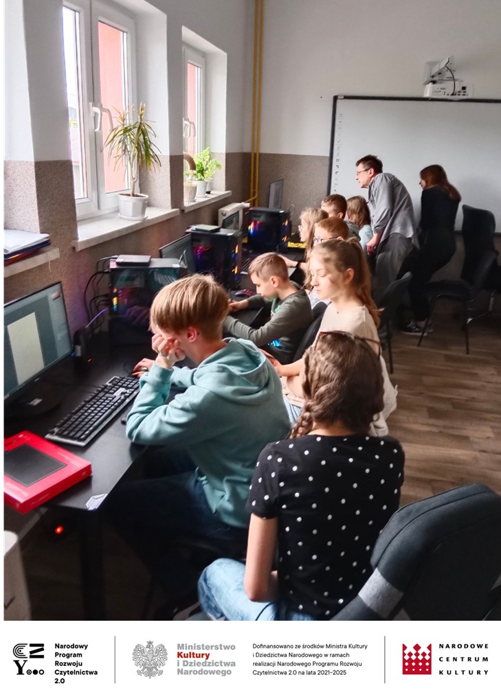 W dniach 30 i 31 maja 2022 roku w Gminnym Centrum Kultury w Kowalach Oleckich odbyło się pierwsze z czterech zaplanowanych działań edukacyjno-animacyjnych, mianowicie warsztaty grafiki komputerowej. Zajęcia zostały zorganizowane i przeprowadzone w ramach programu BLISKO – Biblioteka | Lokalność | Inicjatywy | Społeczność | Kooperacja | Oddolność. Działanie pt. „Pole wyobraźni”, w ramach którego przewidziany jest cykl warsztatów artystyczno-literackich łączących czytelnictwo z różnymi dziedzinami sztuki, uzyskało dofinansowanie ze środków Ministra Kultury i Dziedzictwa Narodowego w ramach realizacji Narodowego Programu Rozwoju Czytelnictwa 2.0 na lata 2021-2025.